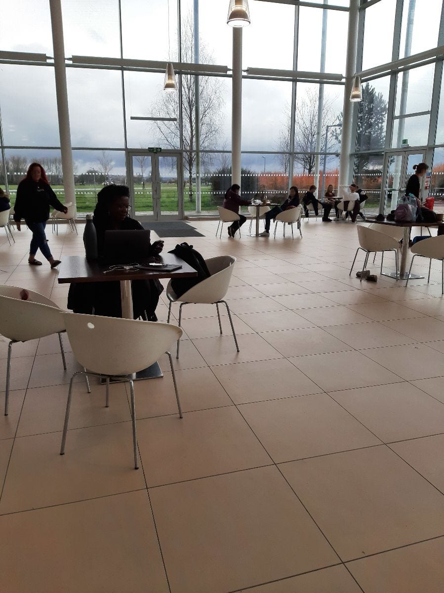 The central subject is my friend Angela, seen here beavering away at her laptop in a leisure centre cafe: