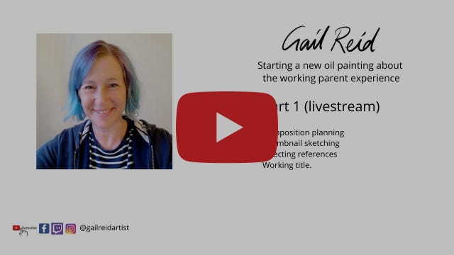 You can just sit back and watch, or join the chat with questions and ideas. See the process of sketching "thumbnails" to help decide composition. Can you help with ideas for the painting title, too?
