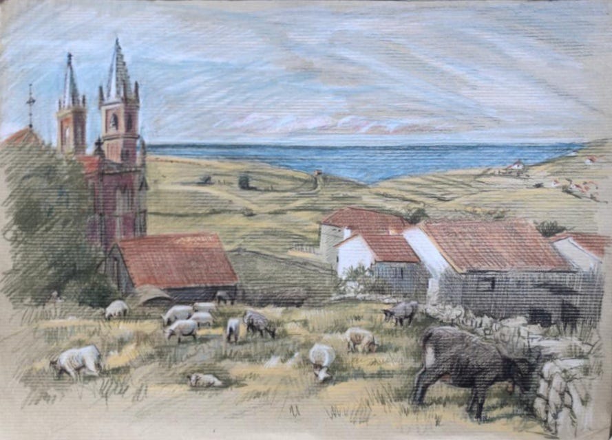 On my return I met a lovely animated neighbour who (from what I could understand) asked for a photocopy of the drawing, as her vegetable garden overlooks the cows.