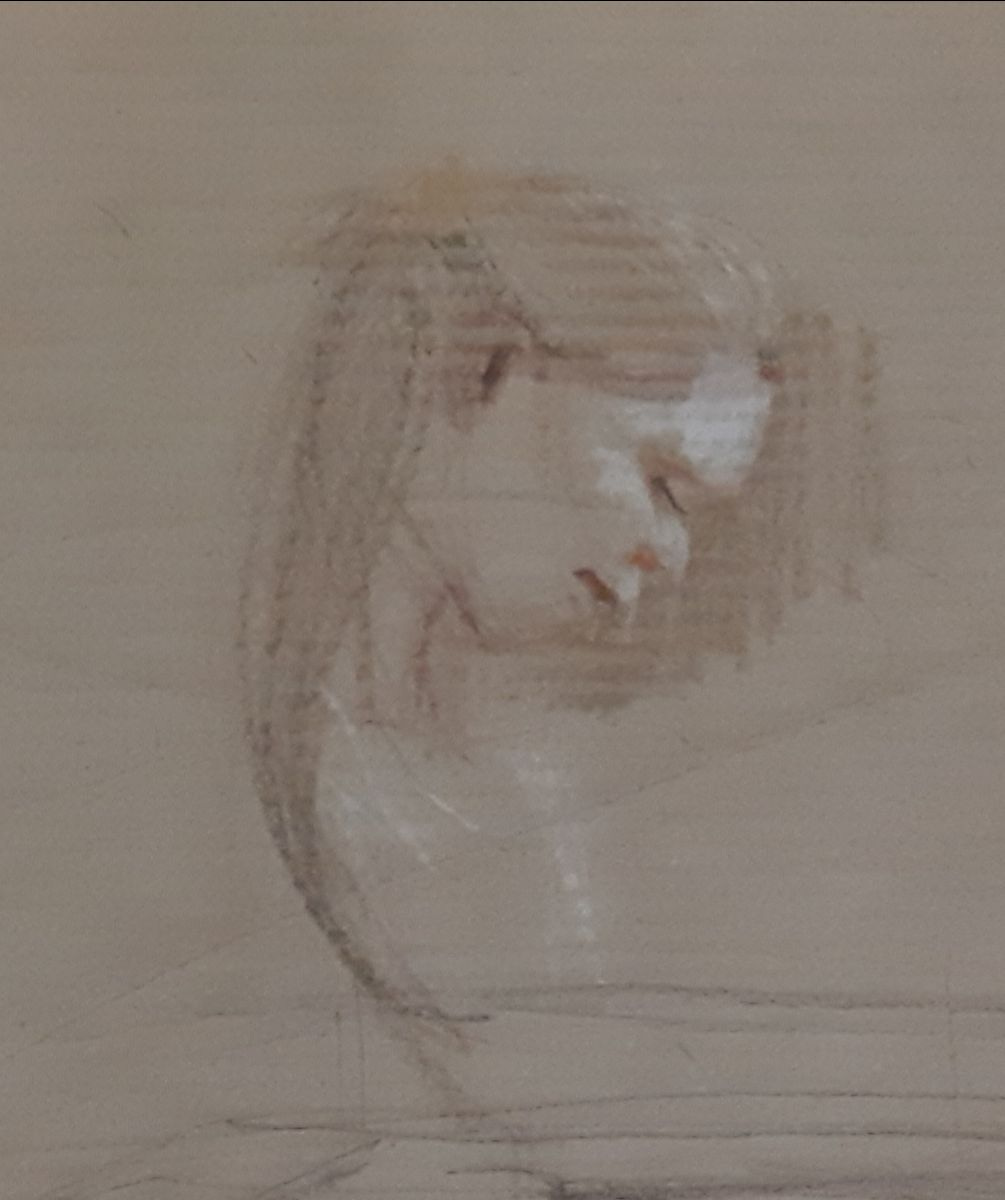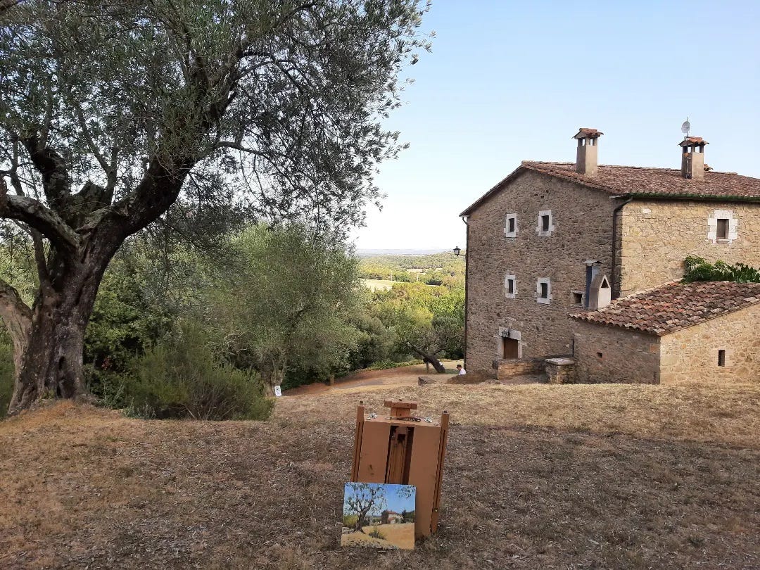 Later, hoping to capture on canvas a souvenir of the holiday, I looked for a perfect view of the place we stayed. It took quite a bit of walking on scorched grass to find a spot under an olive tree, from where I could see both the house and the landscape. The cicadas were deafening, in harmony with the Tock Tock of pingpong (can you see the little red dot of a pingpong bat that fleetingly caught the light during a game that was happening on the terrace?