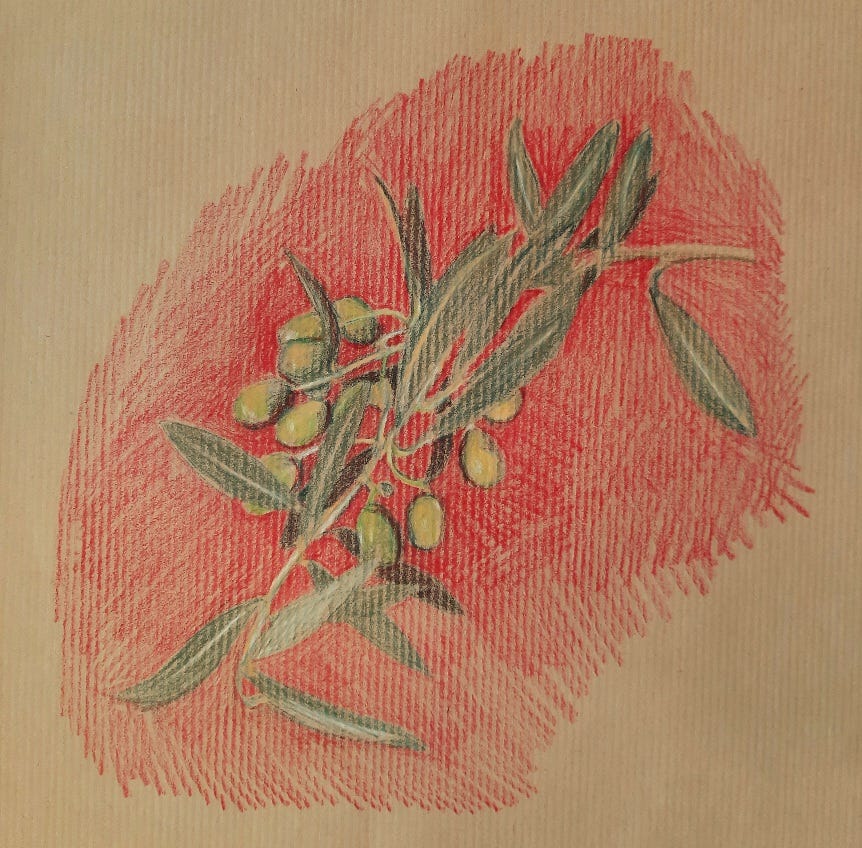 Because it's so hard to transport wet oil paintings, I put them out in the sun to bake dry for the last few days and turned to sketching instead. Starting with some olives found on a walk...