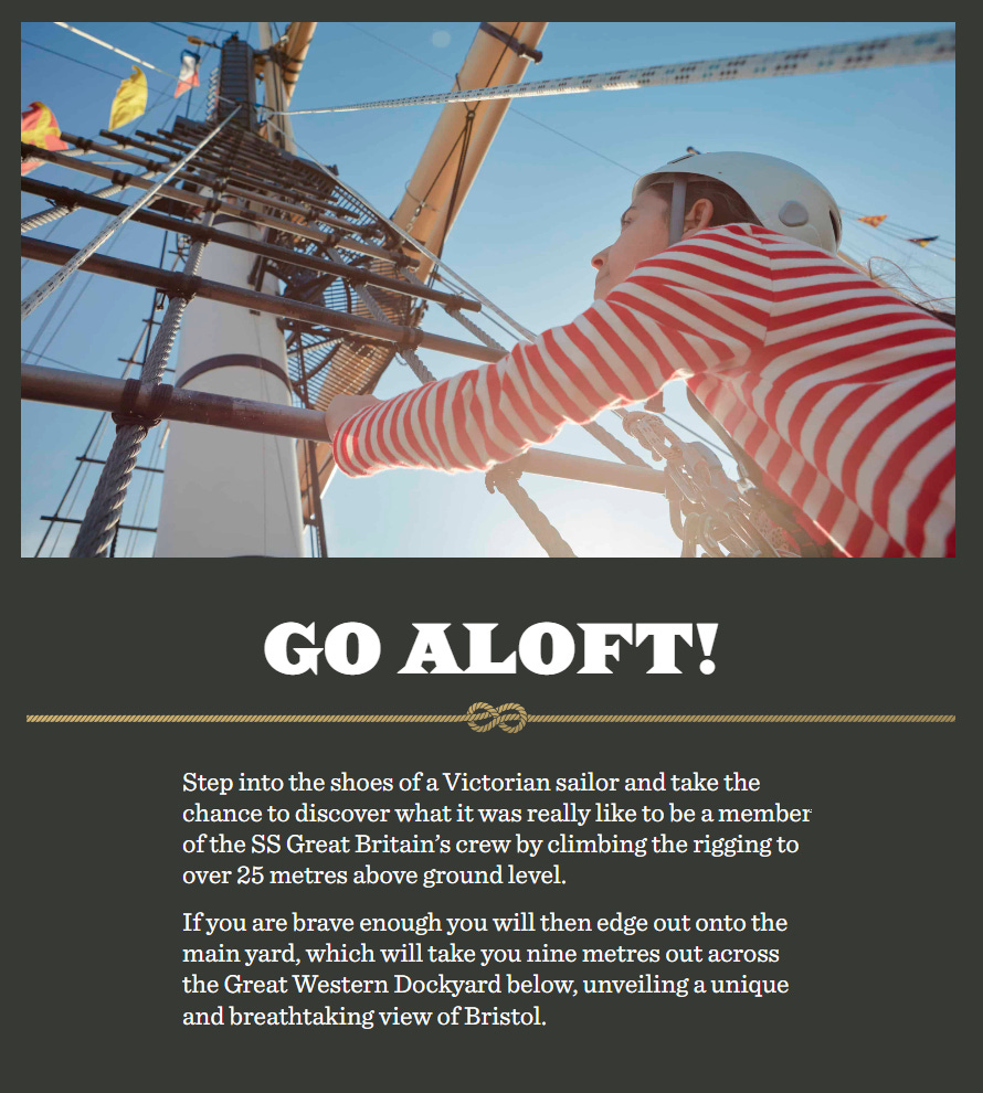 PS, I haven't confirmed with the venue, but hopefully the Go Aloft activity will be open and could be booked in advance. You too could climb the rigging, in the elements, above the harbour. As long as you're over 10 years old, and suitably seaworthy. Great fun according to my kids, who can't be trusted.