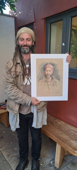 Hosted by Heart Of The Tribe for Somerset Art Weeks, I spent the weekend of 8th/9th October doing quick sketches of visitors, raising money for local food distribution charity Love Glastonbury.