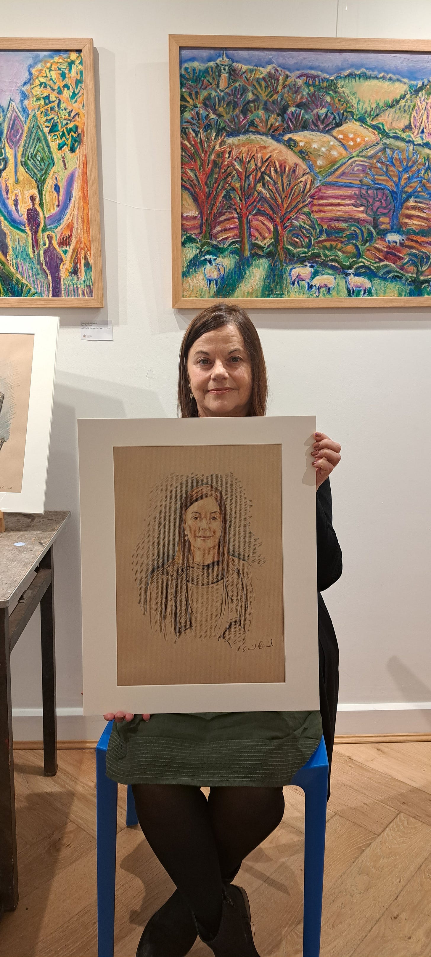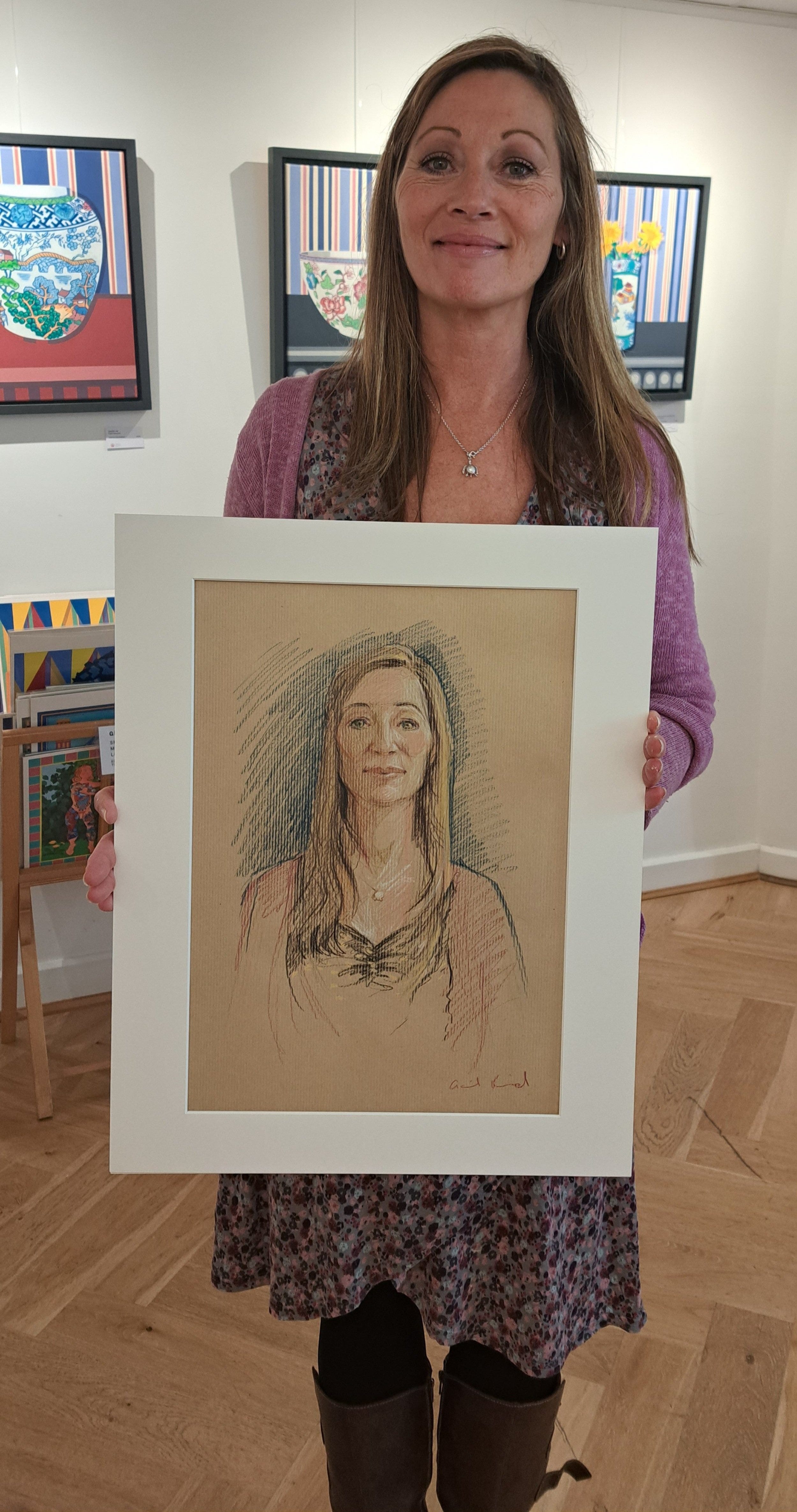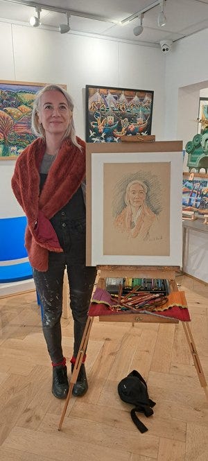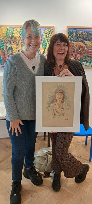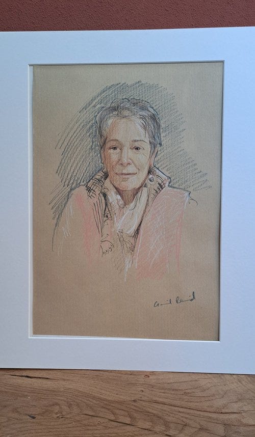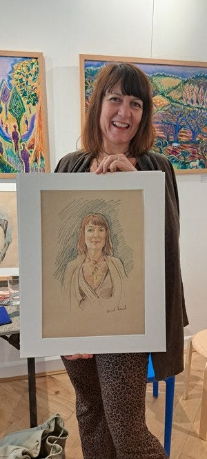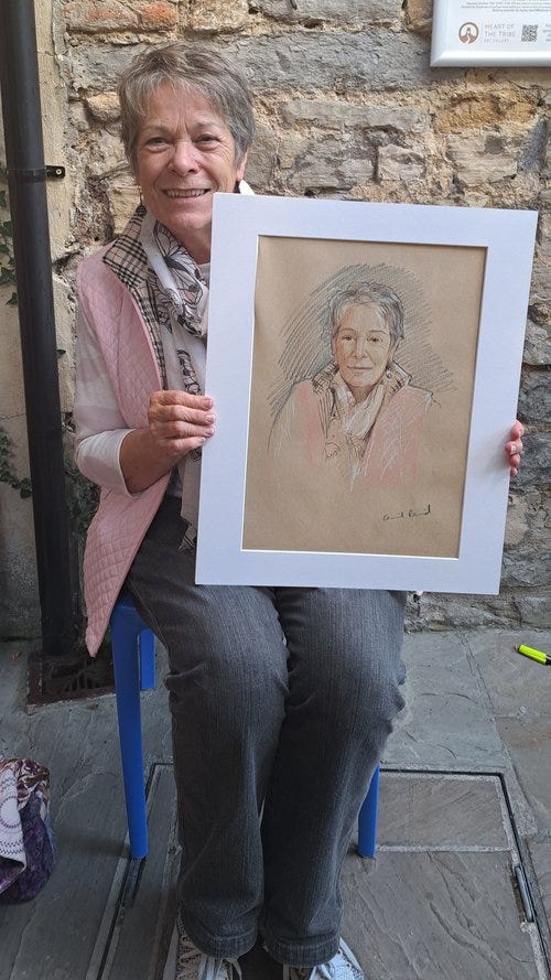 She had a particularly flattering sugar almond pink gilet, and I’m pleased to say was delighted with her portait. I can attest from personal experience that when life is full and relentless, it can (if you embrace it) be a very grounding experience to sit and be drawn.