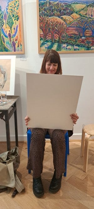 Sarah, a Jazz singer who also works at the gallery, graciously volunteered to be my first appointment. This really helped me relax - as a performer (see below), she has a wonderful presence, and I felt safe that she was happy to have a lively portrait, rather than a sanitised ‘homage’!