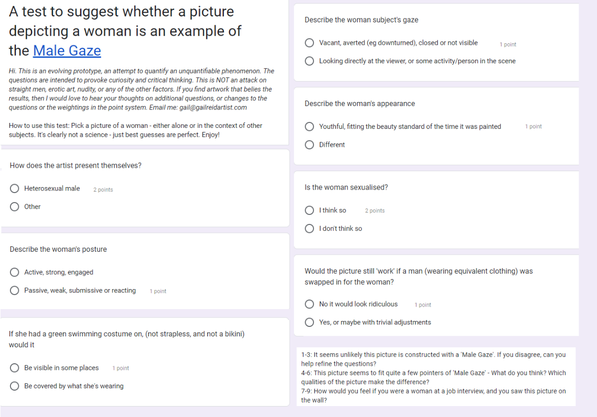 Out of interest, the weighting of the questions was proposed by a male artist friend. And the final question came from Clare, to which I would add that whilst this isn't a witch-hunt, a wizard-hunt does sound ridiculous.