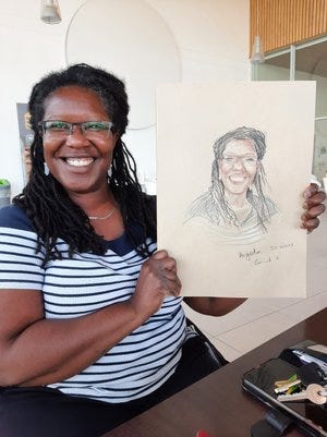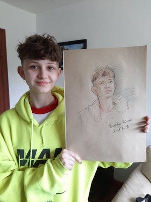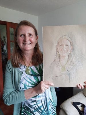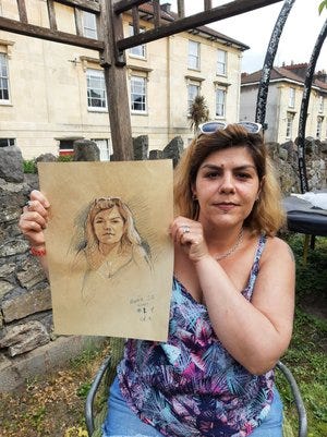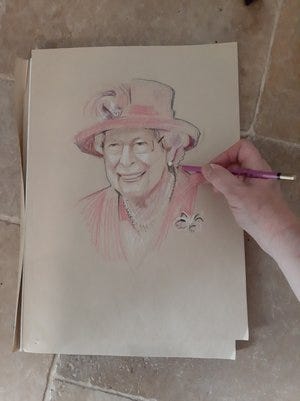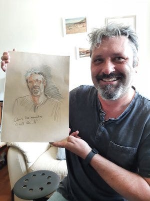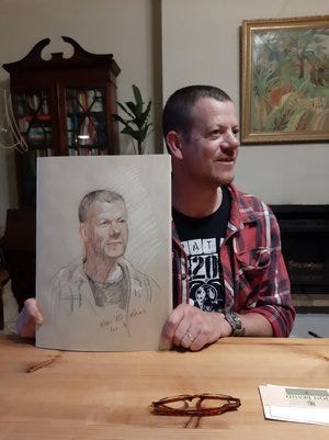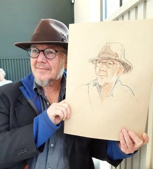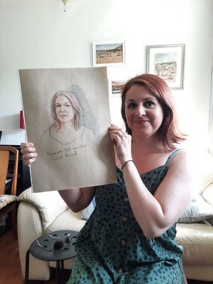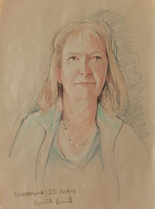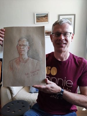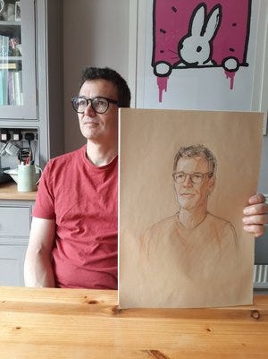 Using everything I’d learned so far, I brought my best game (fresh new pencils) to the event, and did 5 on the trot. Our hosts very kindly facilitated the portraitathon, with a steady stream of refreshments, in their “Gail Reid Gallery” - they have built up quite a collection of my work over the years, fuelling my self-belief. If you’ve ever bought original art direct, you will have helped an artists in this way too.