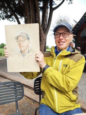 Recently I sketched at a corporate event, drawing sitters for 20 minutes each. In preparation, I did lots of timed practice runs, and hoovered up a bunch of demos & theory. Here’s what I learned and how: