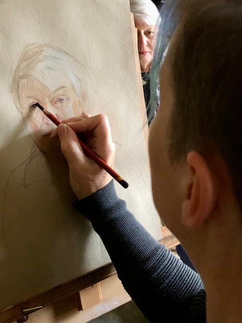 I set off on the coach to the private event in London feeling ready. Suffice to say every single learning point described above proved useful. The sitters seemed very happy with their portraits, and it was great to see the different artists’ approaches. Seems there really are “many ways to skin a cat” - not that I’d dream of doing that!