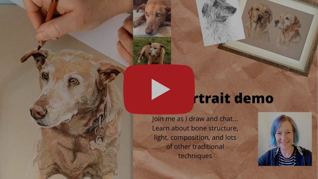 Would you like to watch an artist at work, and hear them explaining their process? One step short of the streets of Montmartre, you are invited to watch and listen as I chat and work on a portrait of beautiful Marjorie!