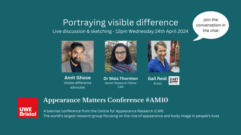 My thanks to CAR for introducing me to Amit, and commissioning the portrait. My first contact with CAR was as a speaker at TEDx Bristol in 2023, where Dr Nicola Stock (associate professor at CAR, conference co-chair) was also speaking. Dr Stock spoke about Visible Difference, I spoke about Body Image - a match made in heaven!