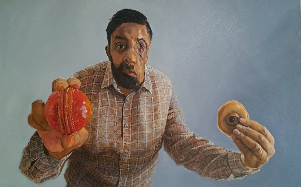 This painting refers both to Amit’s work (on social media and public speaking), and to the transformative effect that his bowling skills had on his school experience.