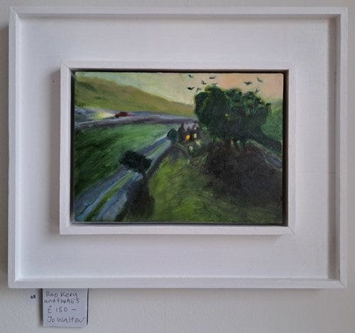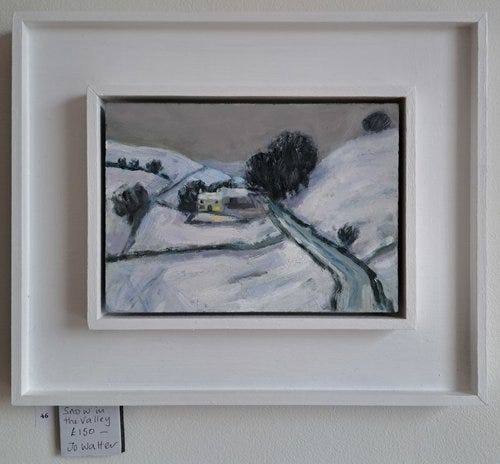 Jo Walter is a Bristol based artist strongly connected to her Cumbrian roots. She works with oil, acrylic, charcoal and ink to create landscapes, still lives and intimate domestic interiors. She uses colour to describe her emotional response to the subject and enjoys bringing colours together to create mood and atmosphere.