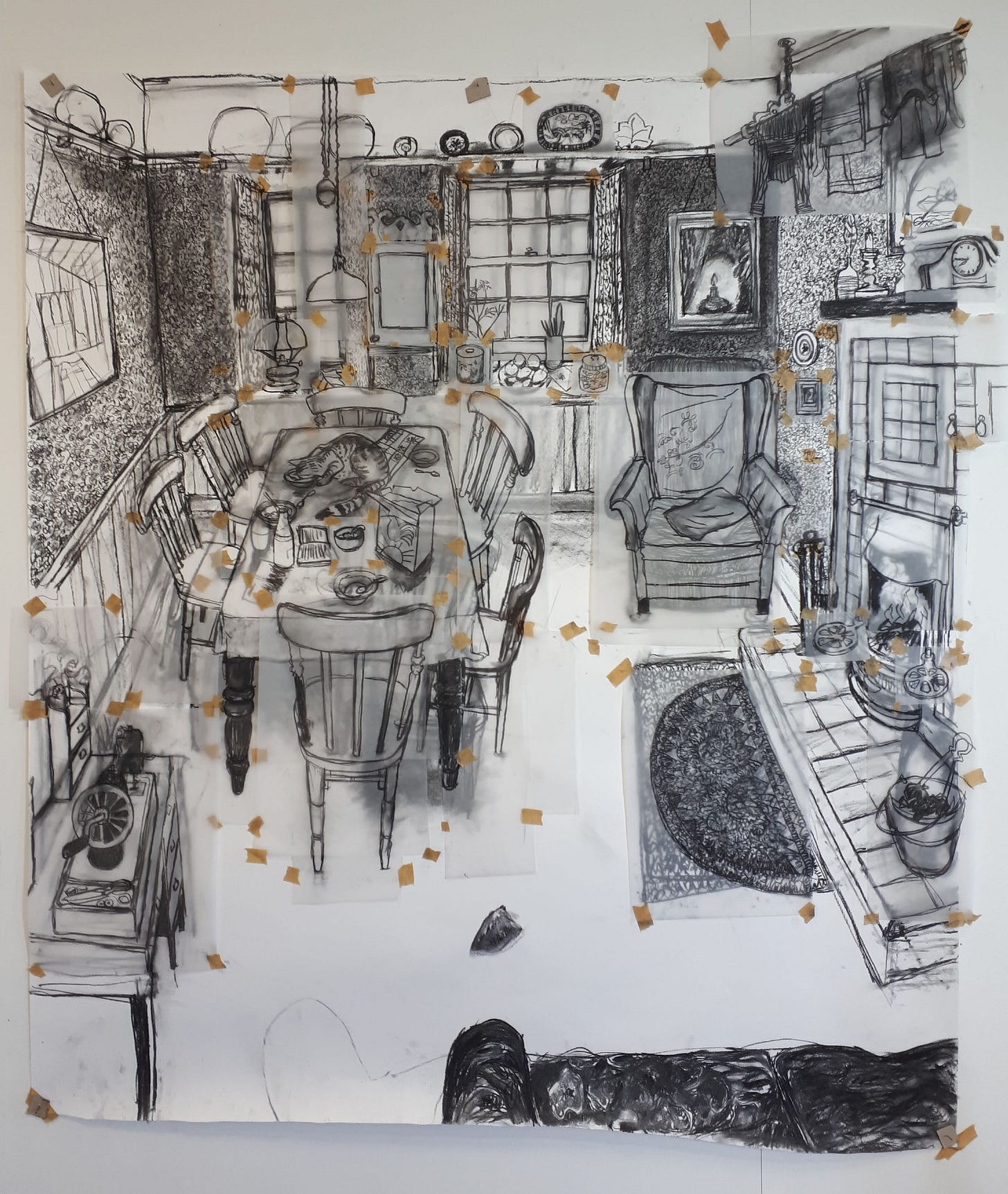 “So I thought I’d do a really big drawing - I had this lovely wall, put a huge (4ft x 5ft) piece of paper up, and just started. I sent it to my sister, who said “You’ve forgotten the jam cupboard. And you’ve forgotten that the windows only had six panes in each sash”.