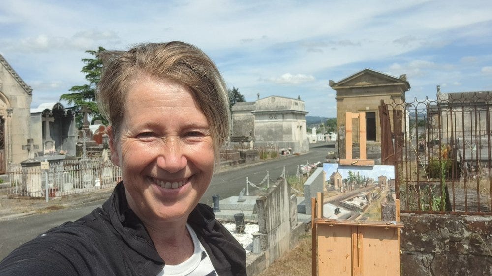 What Jean actually said, in all earnestness, was ânobody has ever done this here beforeâ. I cannot recommend cemeteries enough as a painting location. Peaceful, beautiful, rich with humanity, and great shapes.