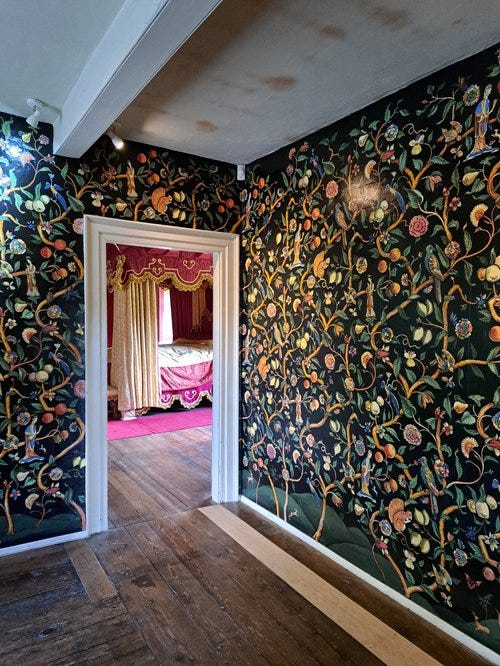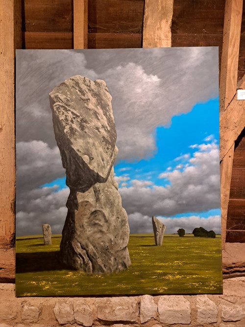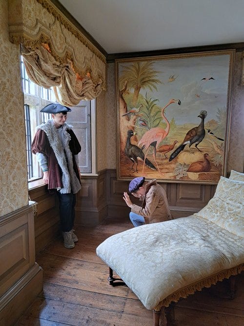 Finally we tempted Tom away to see the museum and manor. In the barn there was a “Sentinels of stone” exhibition of work by Tony Galuidi - fabulous large oil ‘portraits’ of the monolithic stones (available to buy here). The tudor manor rooms have been decorated in period-themed recreations, including dressing up costumes, very friendly staff, and lots of artefacts to handle. Created for the BBC series “The Manor Reborn”, we loved the fabulous chinoiserie mural by Mark Sands and the copy of a Jakob Bogdani painting by C Sands <need ref>.