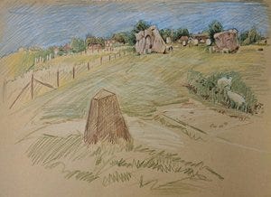 Leon sat with me, chatting to tourists and taking their photos in front of the stones until I was done. Tom went to another spot, even asking to miss tea and cake so he could finish his second drawing. The regularly shaped stone in my sketch is a recent marker, indicating where stones are submerged/lost.