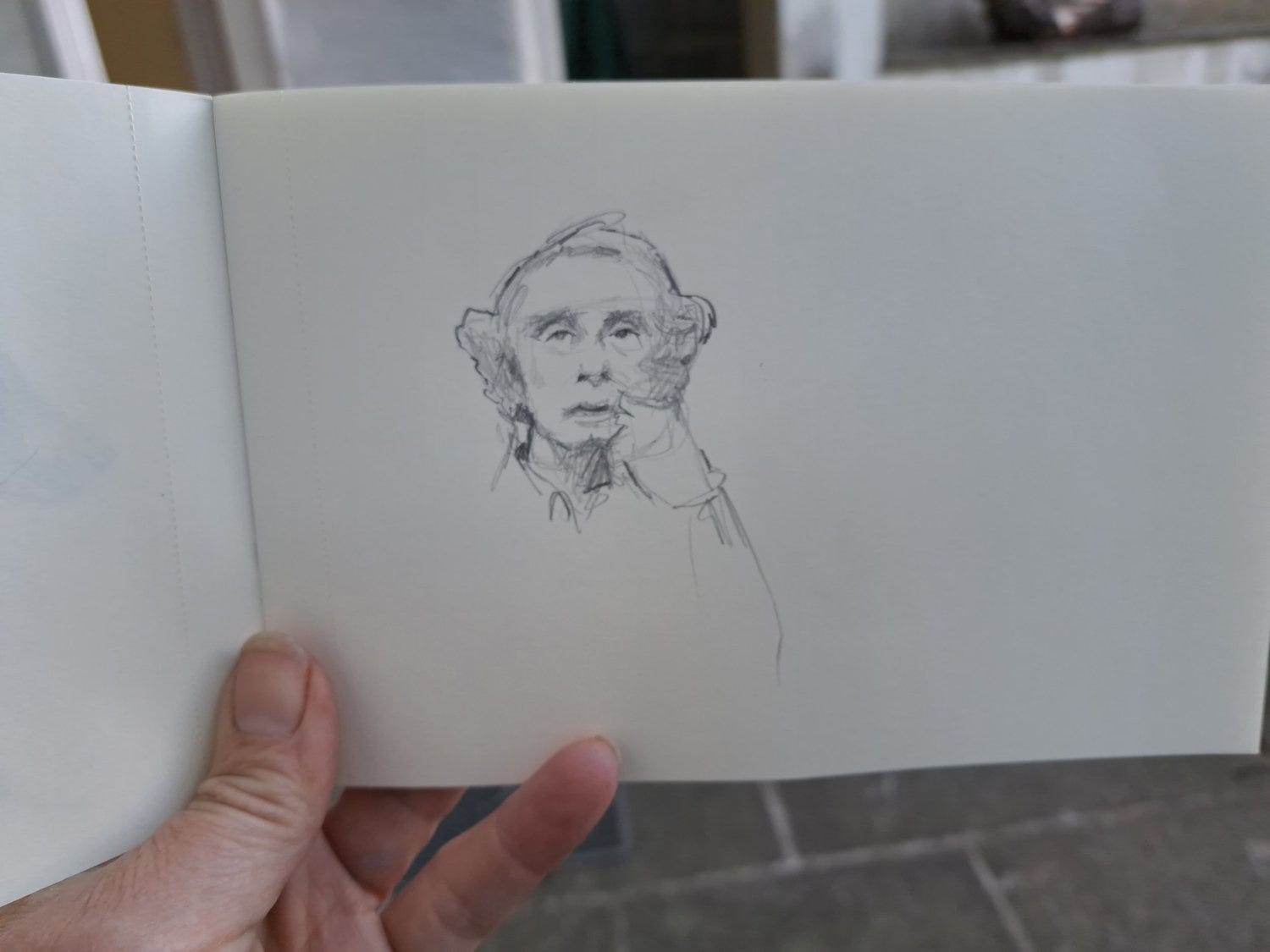 We arrived at the museum on Monday afternoon, and 2 out of 3 of us were compelled to sketch urgently and IMMEDIATELY! Unfortunately we had dropped our cases off at the Air Bnb, so we plundered the shop for their (very serviceable!) sketchbooks and (HB) pencils. After a circuit of the ground floor, Leon pootled off to explore upstairs, and took a great photo from the 1st floor: