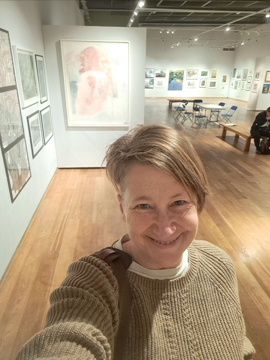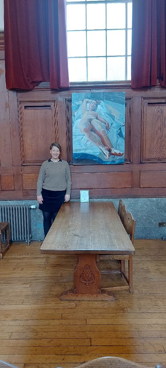 It was lovely to take in the splendour of the Goodenough College Great Hall one last time. I was delighted to hear that staff and students had felt happy to see people "who looked like them" in my paintings hanging on the walls. Also that my painting of Cheryl 'Defiance' had prompted interesting conversations around nudity in art. I think it's so important to exercise the rights we have to work from the figure, and to exhibit such work. All sorts of pressures (eg algorithmic censorship emanating from beyond our shores, and ideological objection) constantly challenge that liberty, and we cannot take it for granted.