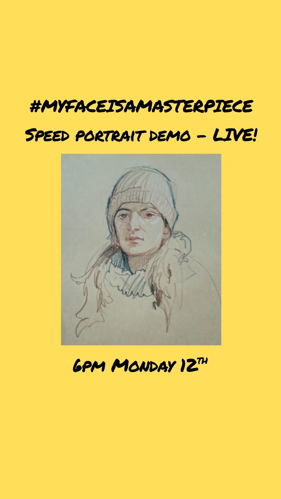 Join me live on Monday at 6pm, for a 30-minute walkthrough of my favourite pencils, paper, and method for drawing faces quickly. I'll show you step by step how they help me draw people accurately and expressively.