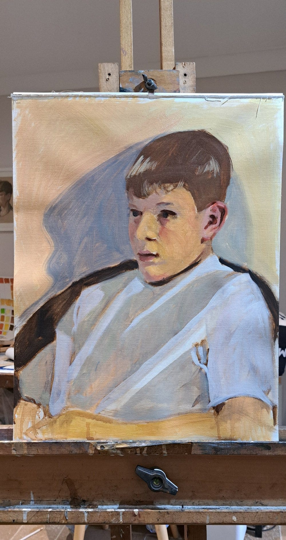So here it is laid bare for you - my honed process and materials, complete with progress shots for each stage, and an accompanying video. Don’t hesitate to ask questions in the comments, and watch the free demo video (see below), of me using this process to paint my son Tom. Look out for his ad-break, and if that’s not enough Tom for you, watch PAOTY on Sky Arts (released Autumn 2023) to see him in the audience.