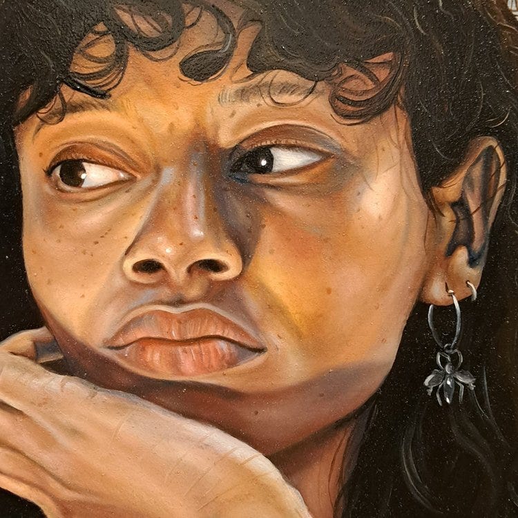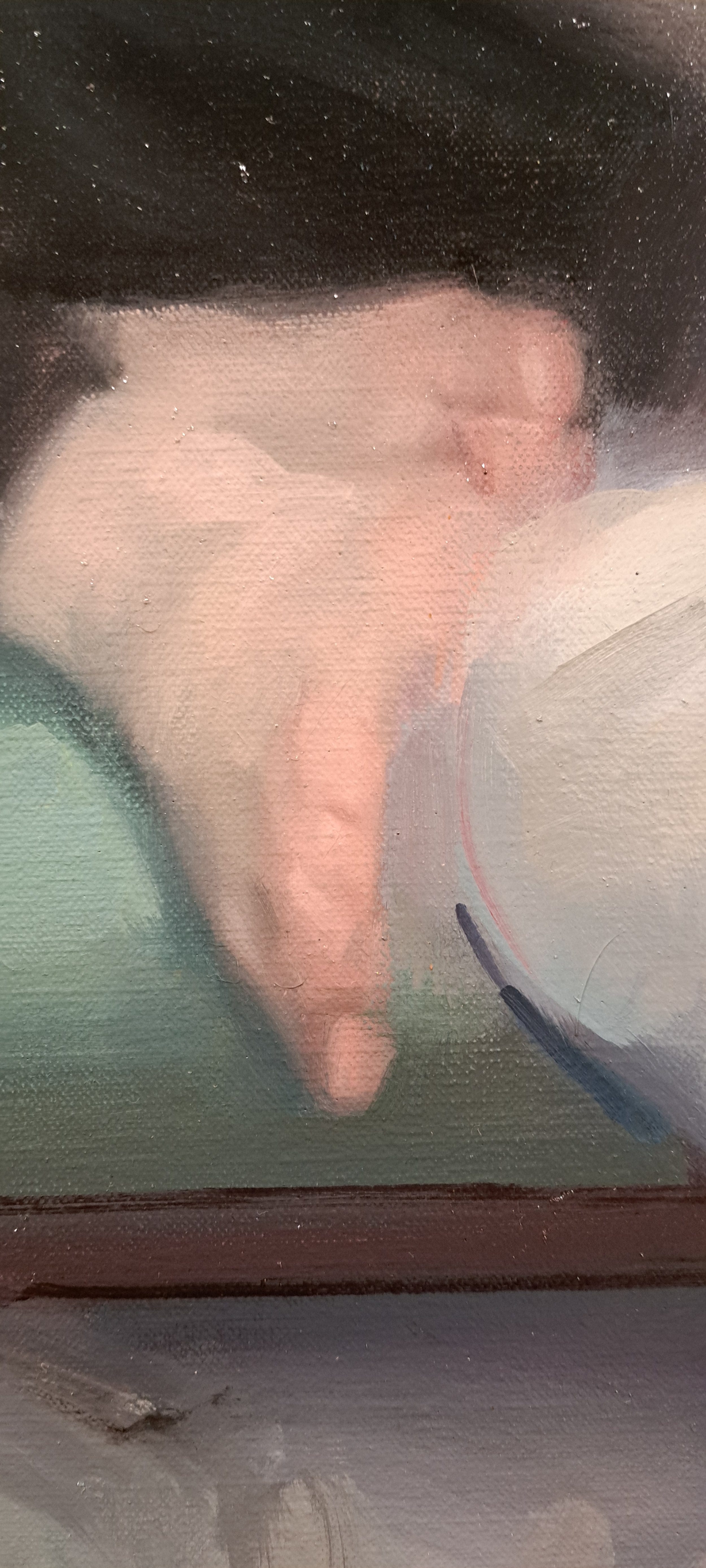 There is a process whereby RP members can put forward artists for inclusion in the show, as an alternative route to the open call submission. I particularly love that Miriam Escofet RP chose to champion Joshua Donkor. As Joshua’s technique and exposure both build (happening VERY quickly) I see parallels in the level of realism, paint application, and compositional choices they both make.