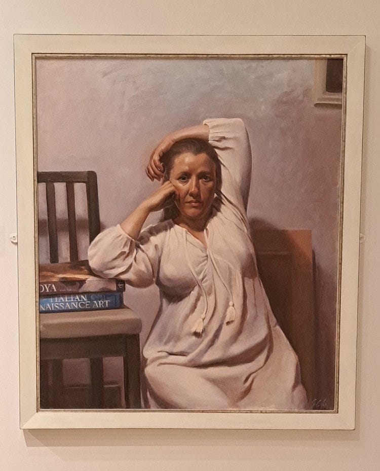 After the difficult Covid years, I’m guessing this annual event has benefitted in footfall and profile from the coronation, and from not having to compete with the National Portrait Gallery’s BP award. The very personable Annabel Elton (head of commissions for the society) is on hand in the gallery throughout the show. See Royal Portrait Society exhibition website for information and a full listing of this and previous shows.