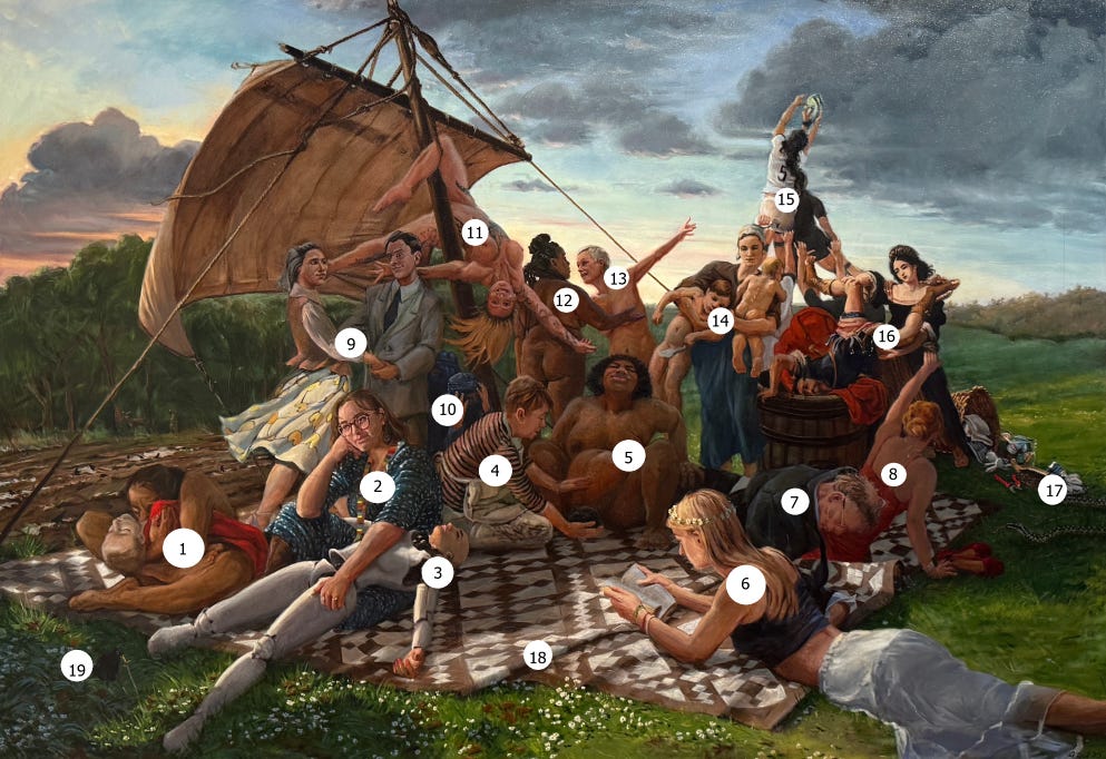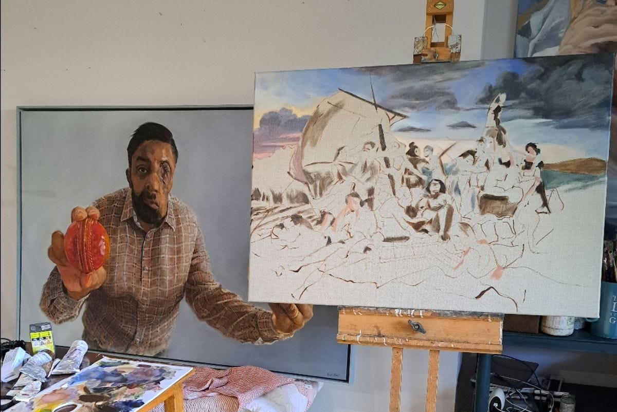 Between us (not on social media), I've repainted The Raft Of The Medusa at a smaller scale (70x100cm) in order to avail myself of an opportunity. The original took months, this version is to a 7 day timeframe, but, you know, hoop-jumping is my drug of choice. Bouguereau was well known for making copies of his own work, and quoted as saying that he enjoyed it very much, particularly when it came to adding variable finishing touches. So I embraced that spirit, cancelled everything I could (no world leaders, unfortunately), neglected house and family (even more than usual), and finished in the wee hours of Monday morning. For the painters reading this, to speed up drying time I used minimal impasto, used Liquin without oil for my medium, and a drop of cobalt dryer for the slower-drying colours. Today it's comfortably touch dry and off to Sky Blue framers for a tray frame (like its giant sibling). Ready for a careful coat of exhibition varnish (in the frame) at the end of the week. Watch this space for further news.