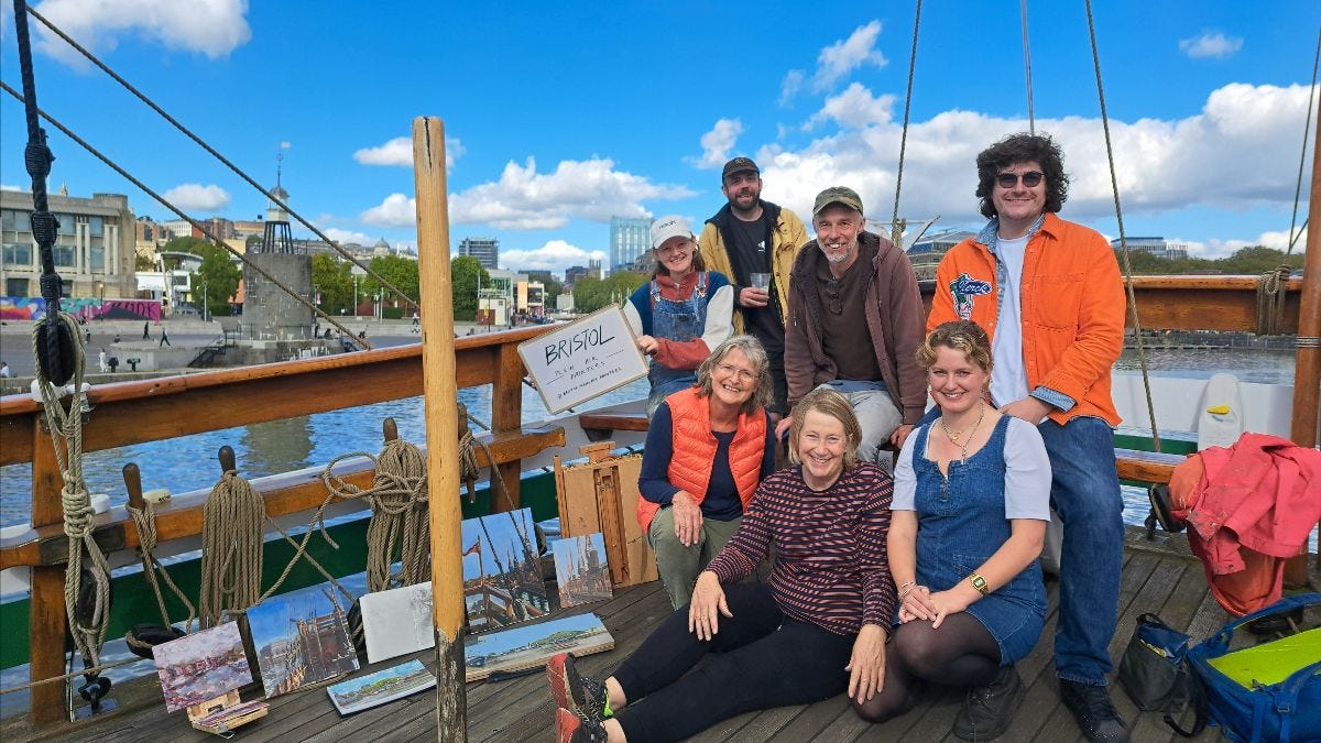 Finally, a shot of the inaugural meeting of Bristol Plein Air Painters. We were blessed with blue skies, and the volunteers on The Matthew (a replica of John Cabot's ship in Bristol Harbour) invited us on board to paint.