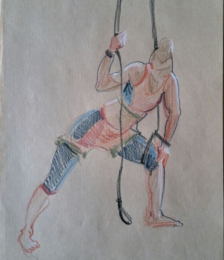 1 - A fantastic session of aerial life drawing run by United Models Lifedrawing in Bristol. This quick sketch shows circus performer Jen Hebden, who used a trapeze and other equipment to create challenging (both to hold and to draw) short poses.