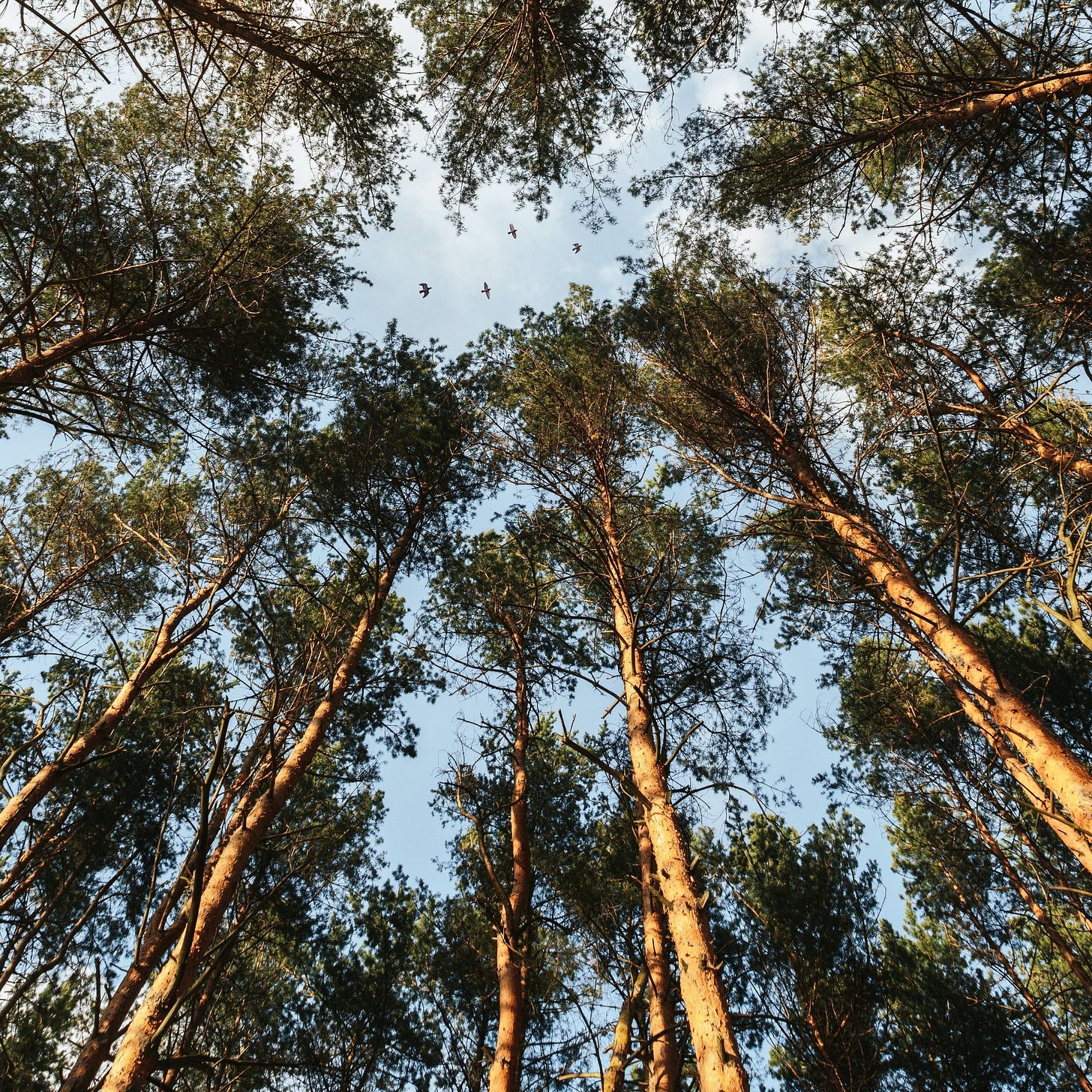 Imagine you are standing in a forest in the middle of a ring of pine trees: